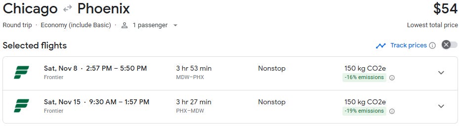 This is one of those rare finds that’s too good not to share — a direct flight from Chicago Midway to Phoenix for just $54 round trip!