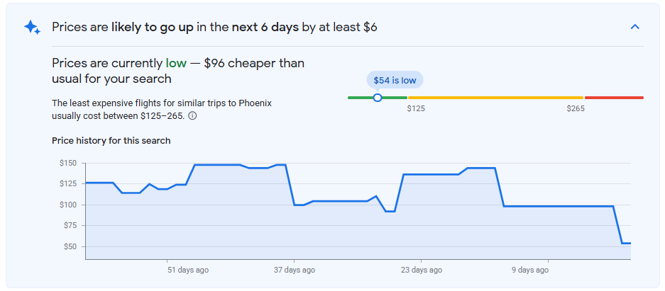 To put this in perspective, this route typically runs around $150–$200, and the only time I’ve seen it lower was back in September 2023, when I spotted it for $38 round trip.
