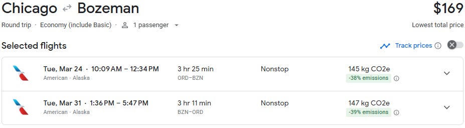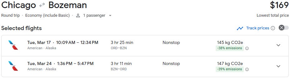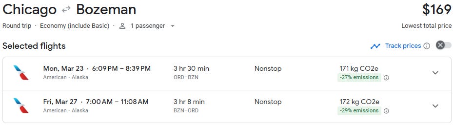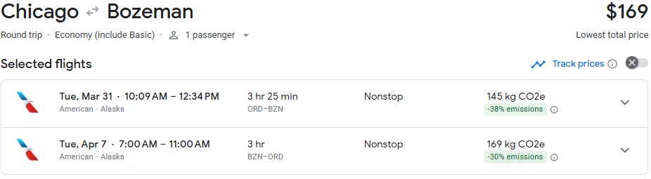Chicago to Bozeman direct at $169 for travel in March and April!