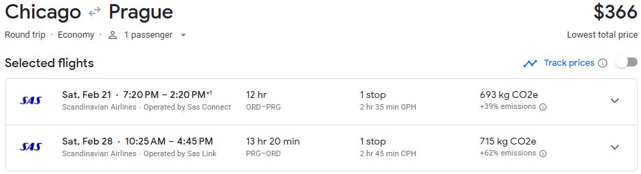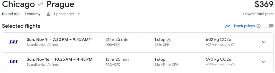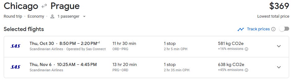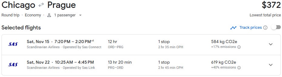 Flights from Chicago to Prague are now just $387 round trip on SAS, an all-time low for this route. Normally these fares are $700+, so this is the cheapest we’ve ever seen it.
