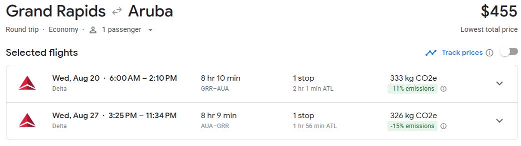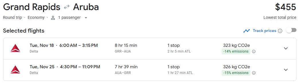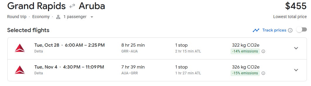 Looking for a tropical escape this fall or winter? Flights from Grand Rapids to Aruba are now available for just $455 roundtrip on Delta, with travel dates from August through January. This route typically averages over $770, making this a rare opportunity to visit one of the Caribbean’s most beautiful islands. The last time prices dipped this low was back in March 2024—so if Aruba’s on your radar, now is a great time to book.