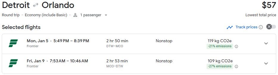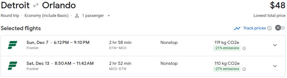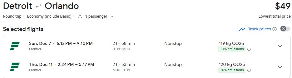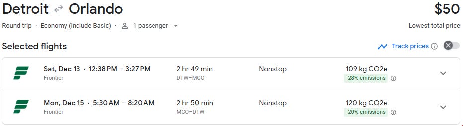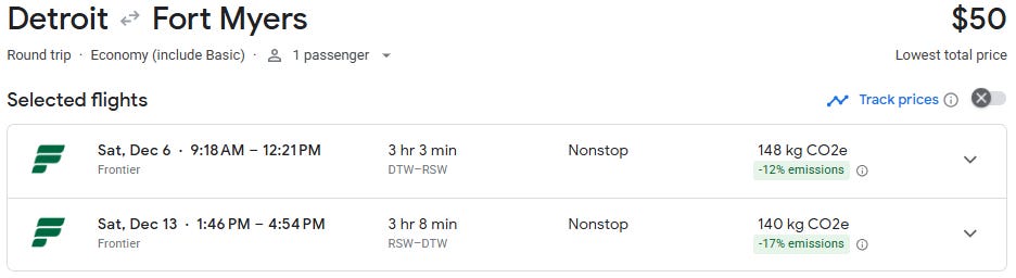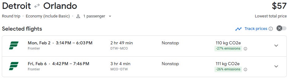 Anytime I can find direct winter flights to Florida for less than you’ll pay for airport parking, I’m going to post them.