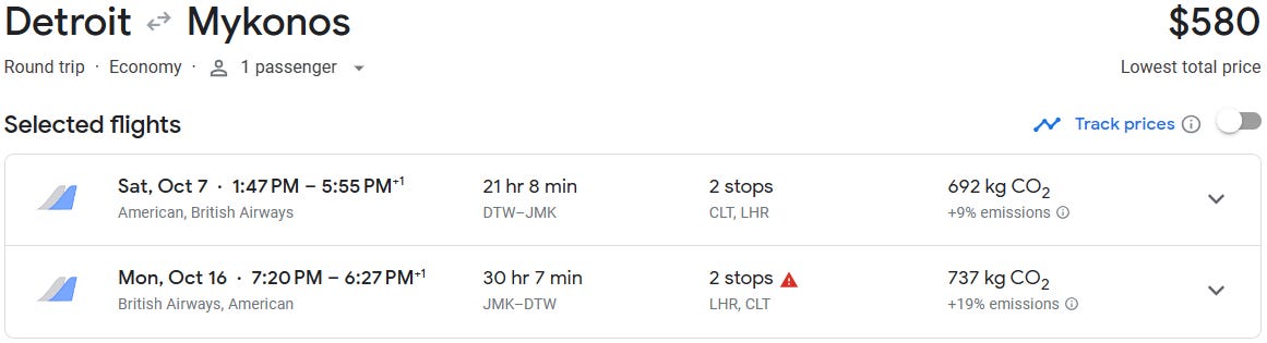 Detroit-to-Mykonos, Greece at $580!