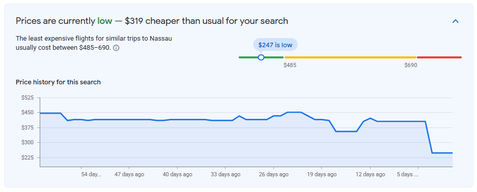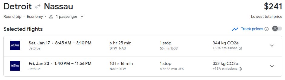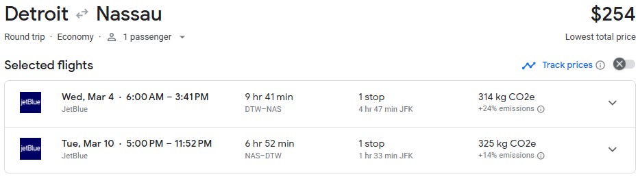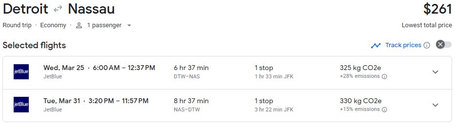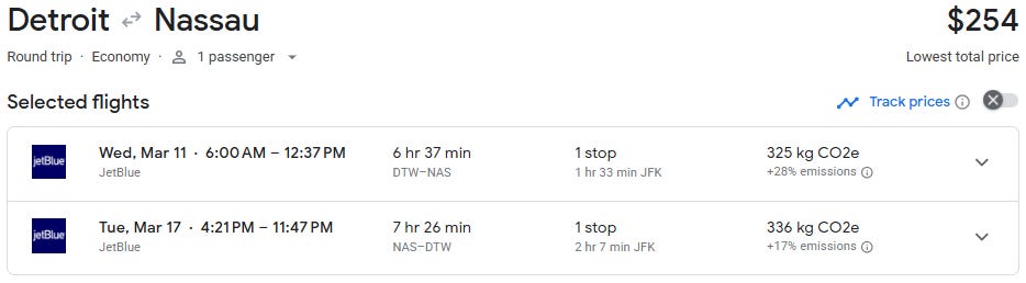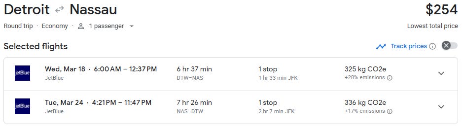 This is an incredible deal to one of the most beautiful and accessible islands in the Caribbean. Flights from Detroit to Nassau are usually $550+, so seeing fares drop to $247 is a massive savings — and a new all-time low for this route.
