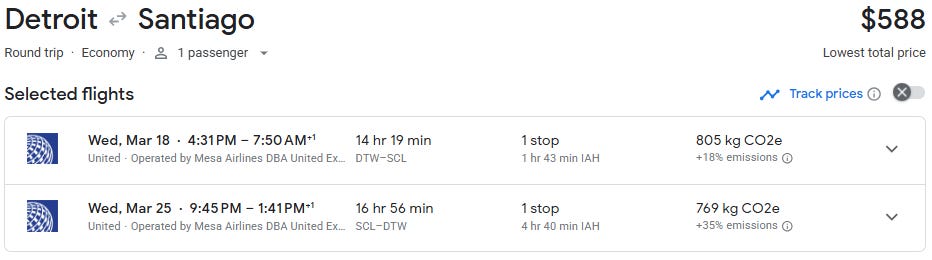 This is an incredible deal, as this route typically costs $900 or more, making it one of the best values we’ve seen for reaching South America from Chicago.