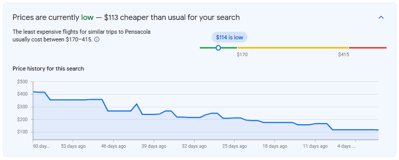 Wow! Even over spring break! Too bad I already picked up the Orlando flight. PNS is where I am from, so I’m always looking for a cheap flight there.