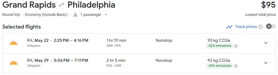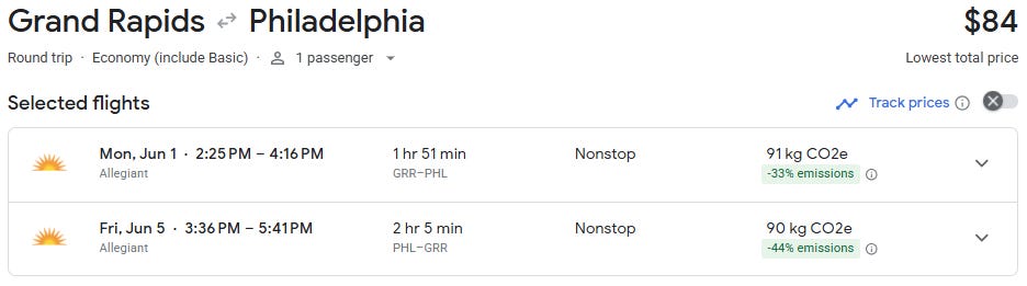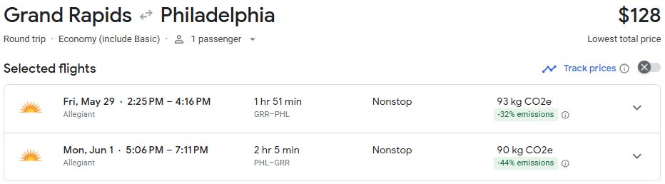 Direct service is the real win here. Philadelphia has long been an expensive and inconvenient trip from West Michigan, often requiring a connection and still costing hundreds more. Allegiant entering the market has completely changed that equation.