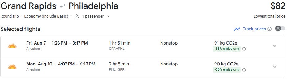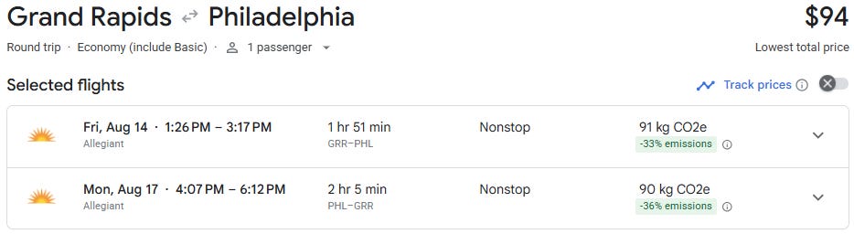 Nonstop service is the game changer. Philly has typically required a connection and a much higher price. Sub-$100 nonstop fares out of GRR like this don’t last long.