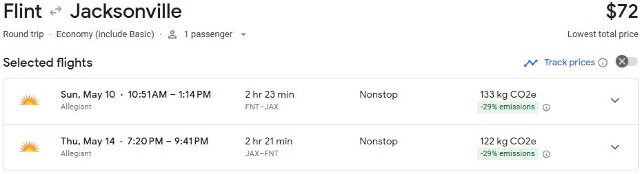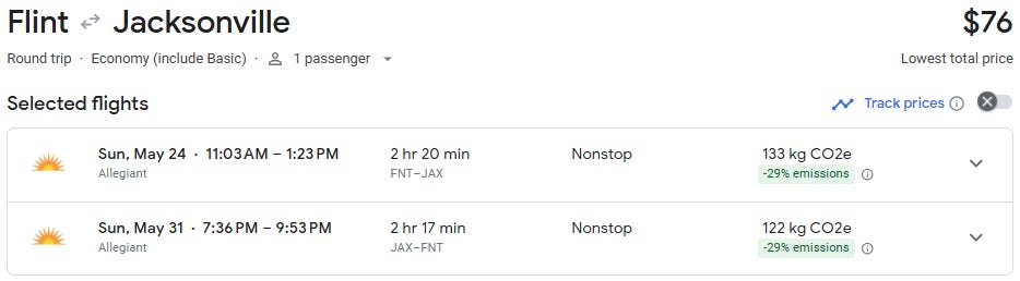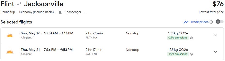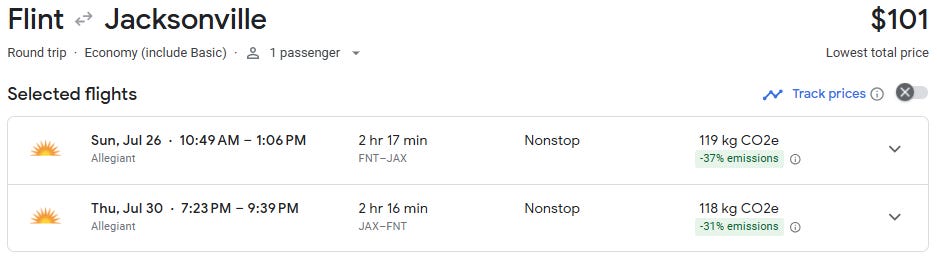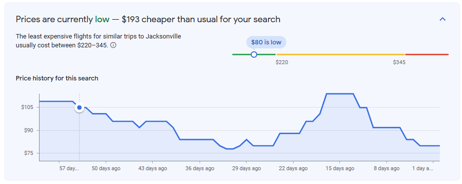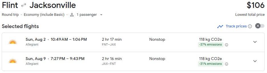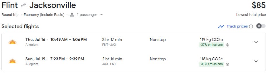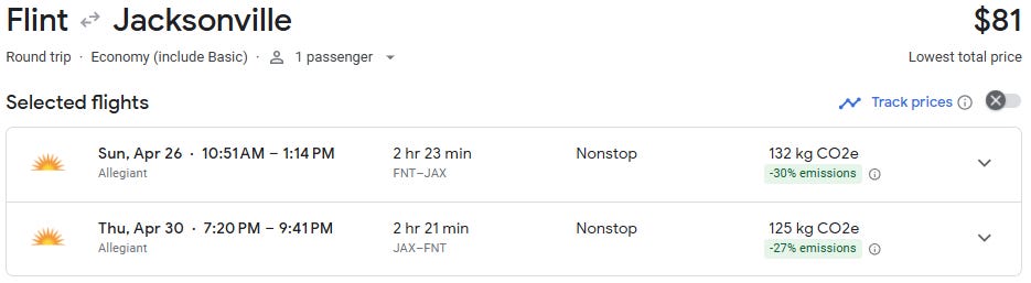 Nonstop flights from Flint to Jacksonville are now available starting at just $80 round trip for travel from April through August. That’s an exceptional deal on a route that typically averages $275+, making this a rare opportunity to lock in a Florida getaway for a fraction of the usual cost.