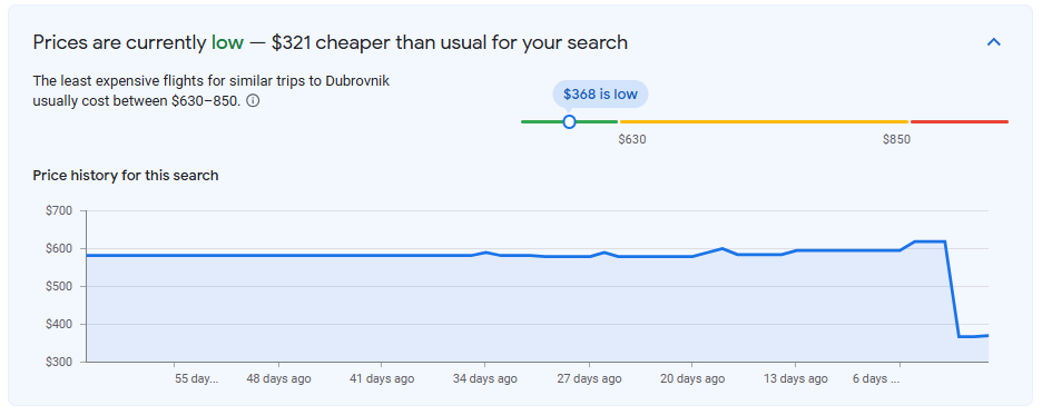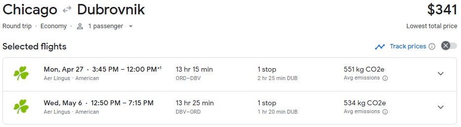I found a flight from Chicago to Dubrovnik for just $368 round trip for travel in early May.