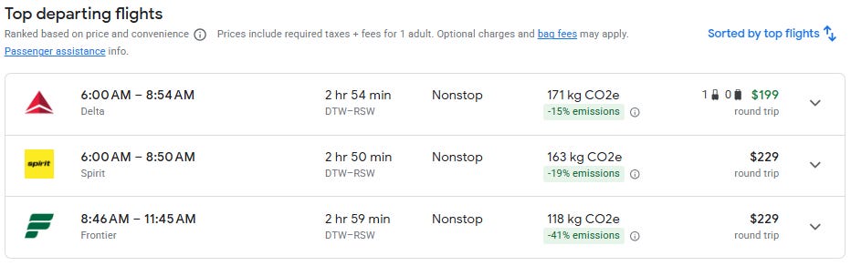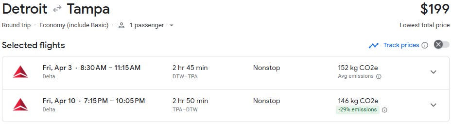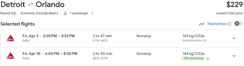 Direct Delta flights from Detroit to Florida for the second week of April are showing good spring break value, with fares in some cases cheaper than Spirit and Frontier.