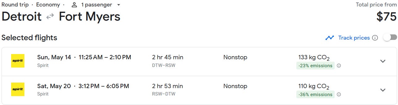 Spirit Airlines has Round-trip Detroit-to-Fort Myers Flights for $75 in May!