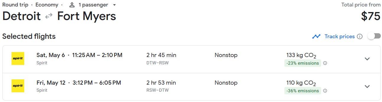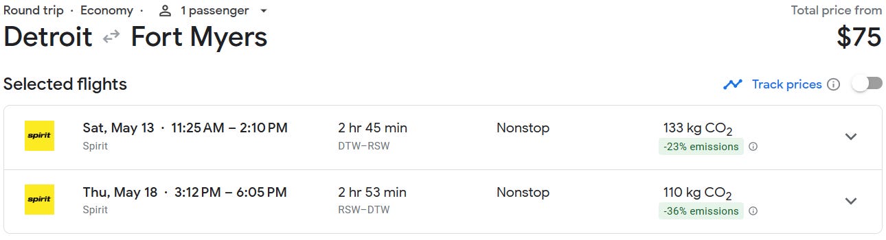 This is the lowest price I’ve seen from Detroit-to-Fort Myers from since I started tracking flights. This route is usually in the $160 - $220 range and the prior low for this flight was $85 set last year. Here are some of the reasons why people visit this part of Florida: